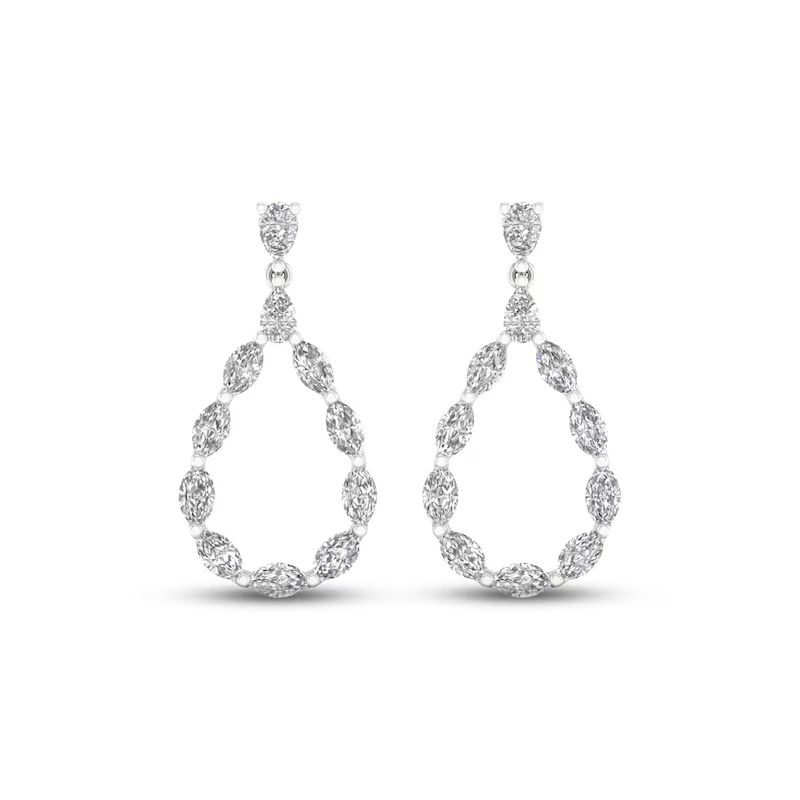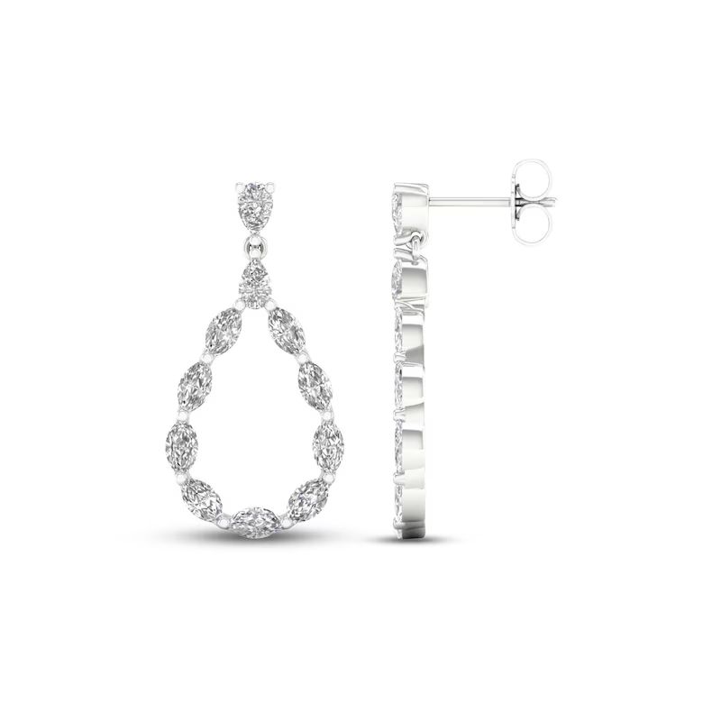 Diamond Teardrop Earrings 2 ct tw Marquise & Pear-Shaped 14K White Gold